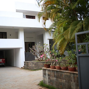 Discover the epitome of modern architecture where the earthy tones and lush greenery of the landscape beautifully contrast the pearly white elegance of this stunning home. This contemporary villa, infused with the charm of South Indian Arts & Crafts style, creates a harmonious blend of tradition and innovation, offering a serene sanctuary that radiates timeless beauty and cultural richness.