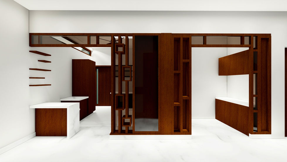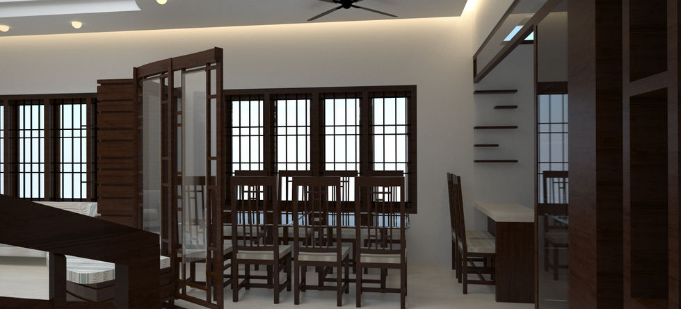 This project showcases elegant interior designs featuring dining areas, living spaces, home offices, and wooden design elements. The designs emphasize sophistication, comfort, and a harmonious blend of modern and classic elements.